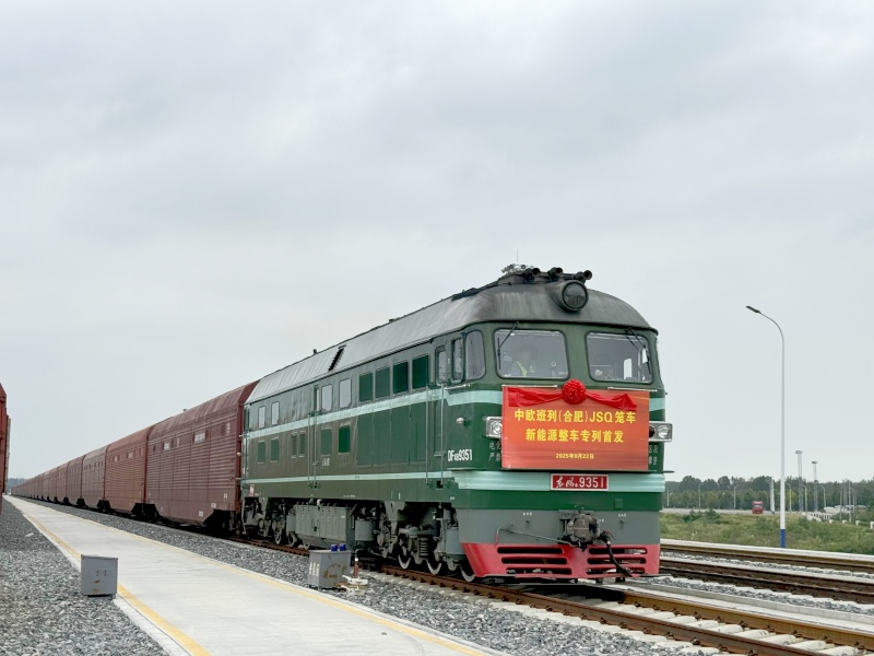 这五年,公司实现了从“运输一条线”到“枢纽一张网”的战略跃迁。2021年,铁路仓储中心正式投运,推动业务迈入物流、仓储、贸易一体化运输新阶段;2022年,合肥首个仓储中心在肥东循环园货场挂牌成立,并升级为省级及国家级化肥储备库,成为产业链降本增效的关键支点;2024年,下塘铁路专用线作为服务全省首位产业的关键工程,已累计发送新能源小汽车超18万辆,解决企业运输“最后一公里”的难题。年60万辆运能、12万平方米仓储、7万平方米集装箱堆场全面赋能,未来,该区域着力打造合肥北部产业物流枢纽集聚区、中欧班列集结中心重要节点区、锂电池铁路运输试点区、新能源汽车商贸物流核心区等四位一体的战略布局。2025年,公司发展迎来多项突破——首单钢材成品卷公铁联运成功落地、首趟直达新疆的“光伏专列”鸣笛启程、首列中欧班列(合肥)JSQ商品车专列成功开行、首获中央超长期国债资金支持。一系列“首”次突破,标志着公司已从传统的线路运营商,蜕变为具备跨区域、多模式、定制化综合物流服务能力的现代枢纽平台。