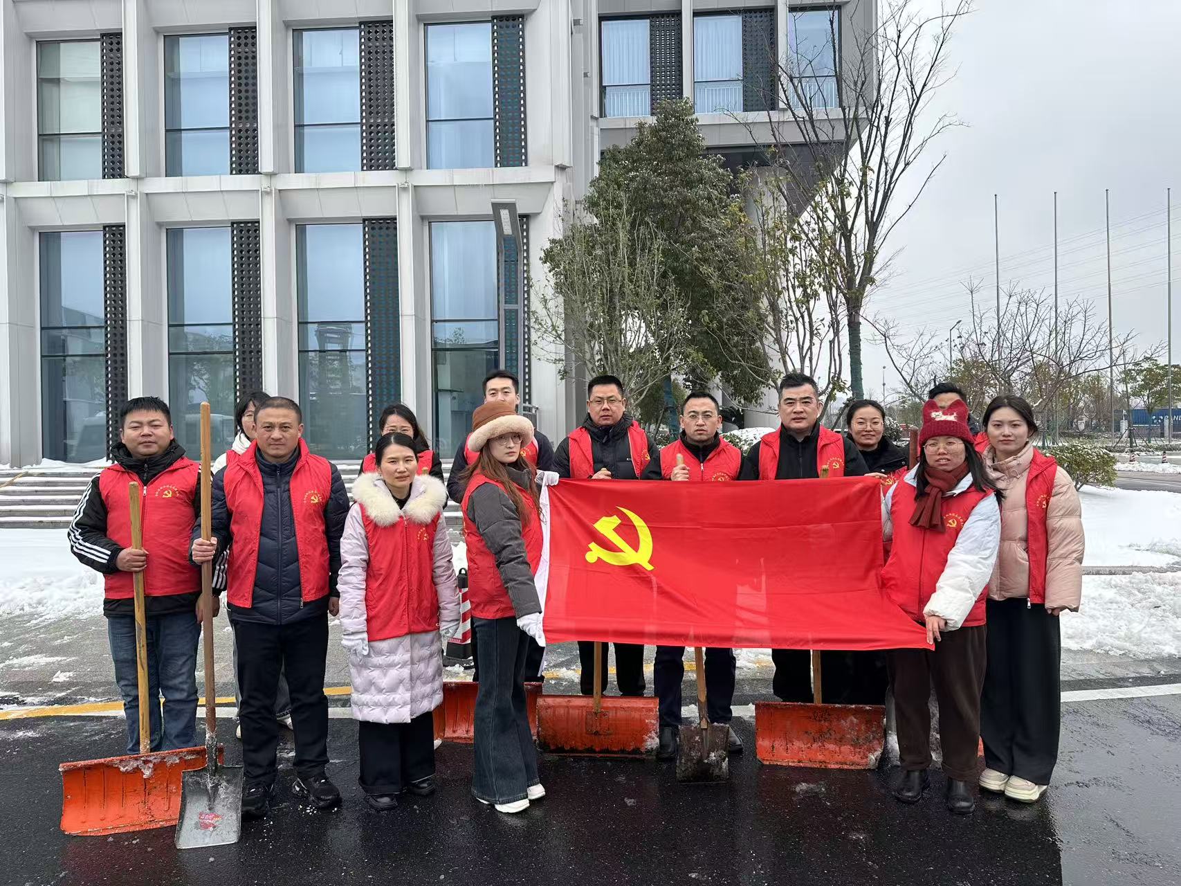 活动中,志愿者们分工协作、默契配合。现场铁锹与地面的碰撞声此起彼伏,一个个穿梭忙碌的“红马甲”在风雪中勾勒出亮丽的风景线。经过大家的共同努力,园区内部及周边道路的积雪积冰得到及时清理,通行条件显著改善,有效降低了雨雪天气带来的安全隐患,为公司正常生产办公秩序和员工安全出行提供了有力保障。