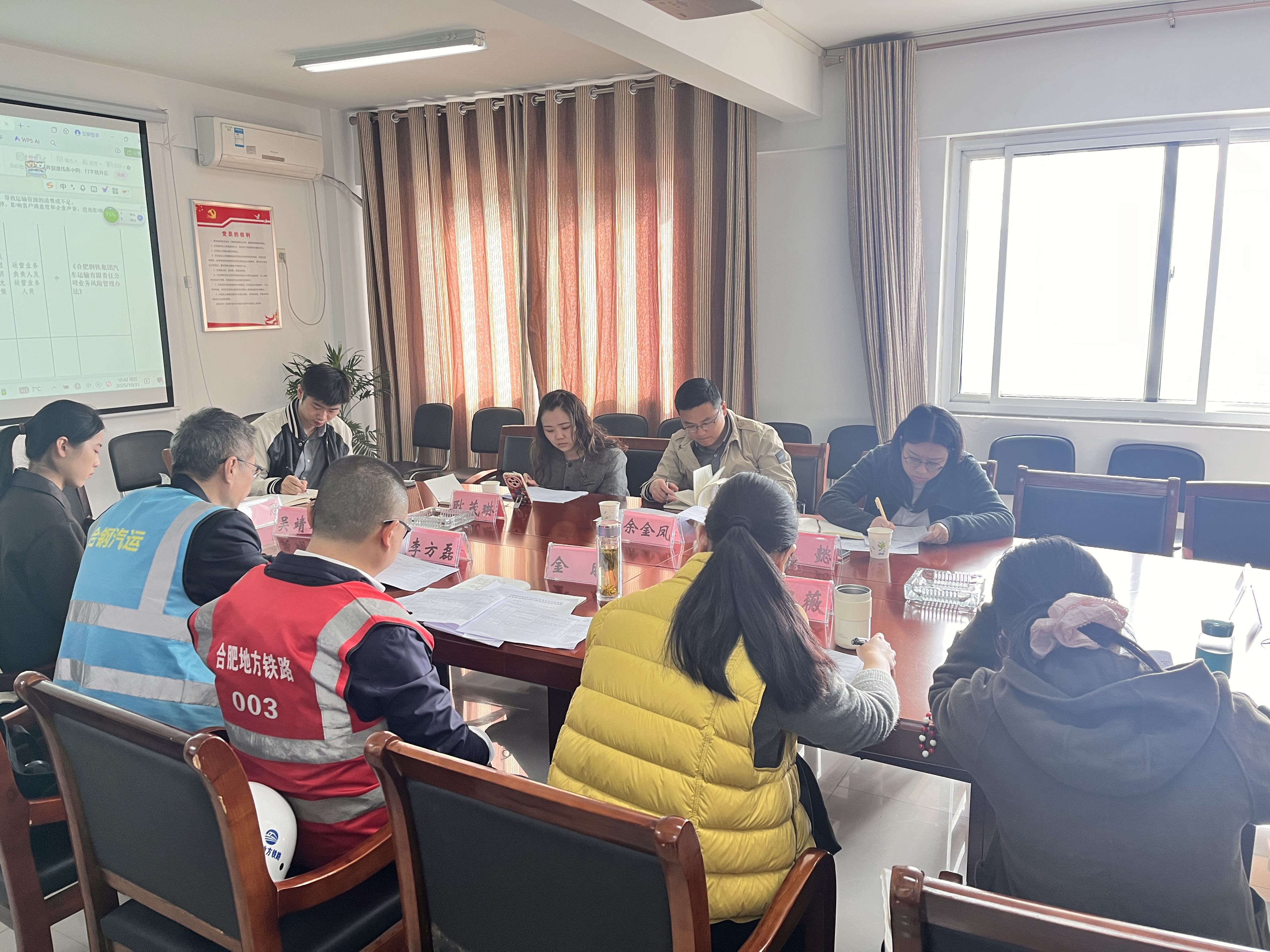 10月31日上午,合肥物流集团纪委在合肥地方铁路公司循环园组织召开业务及廉洁风险提示清单会商会审会,集团纪委委员余金凤带队,会同纪委纪检室、市场业务部、合规审计部、项目管理部等部门,对汽运公司道路运输业务进行全面会审。