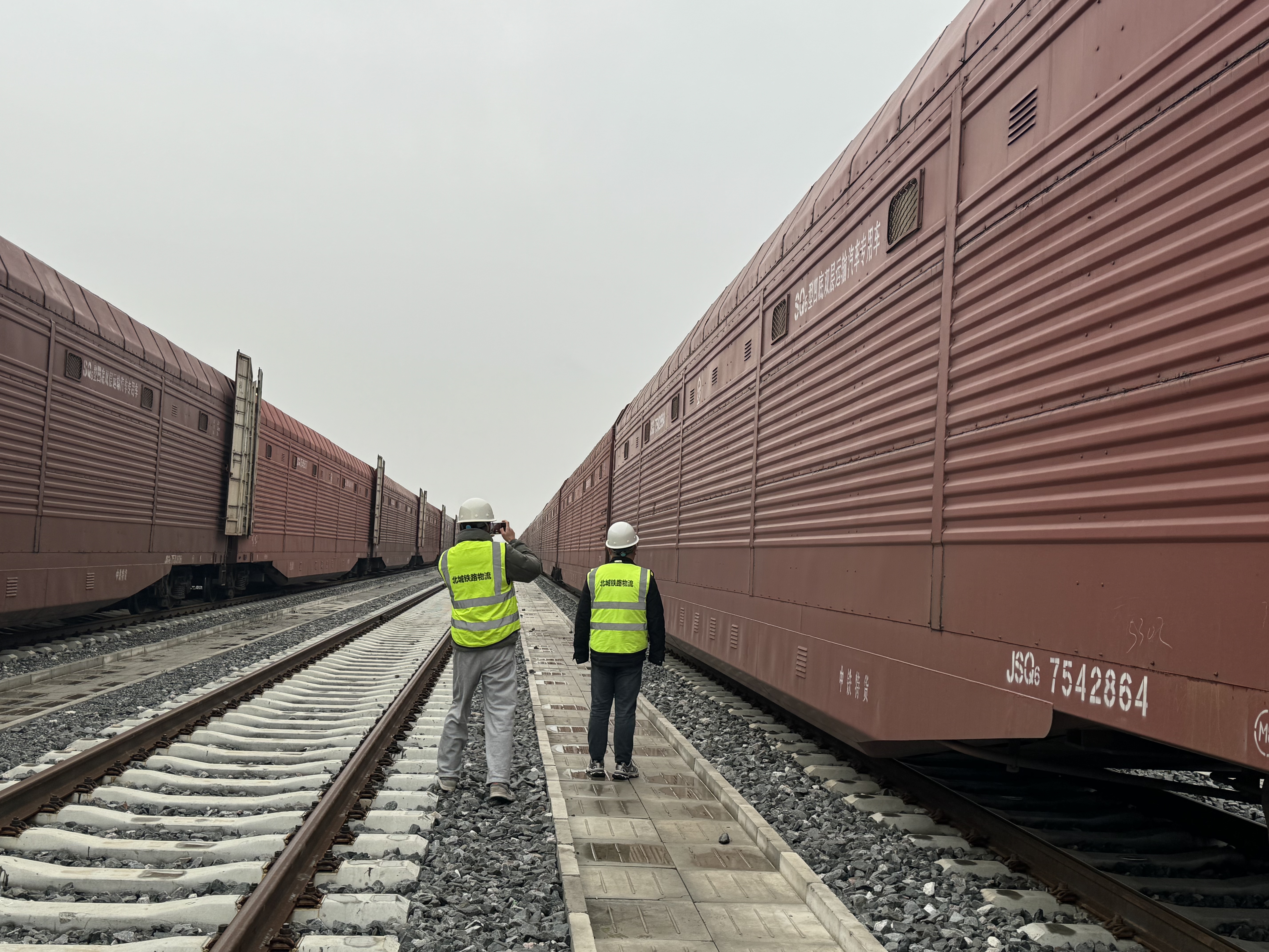 北城铁路公司职工坚守合肥北城铁路综合物流园货场一线,严格开展安全巡查,对专用线车厢、铁轨、道岔、信号设备等关键部位细致排查,做好运行数据记录;同时加大货场消防、用电设施检查频次,全面排查安全隐患,严格落实各项安全措施,既保障节日期间货场平稳运营,也为节后货运工作顺利开展夯实基础。春节期间,合肥北城铁路综合物流园下塘铁路专用线发运171车,发送近2000台汽车。