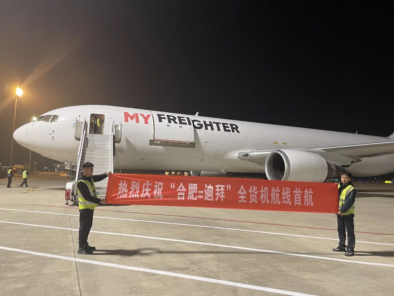 2026年4月4日5:56,一架满载约50吨货物的国际货运航班从合肥新桥国际机场顺利腾空,直飞阿联酋迪拜,标志着“合肥—迪拜”国际货运航线成功首航。